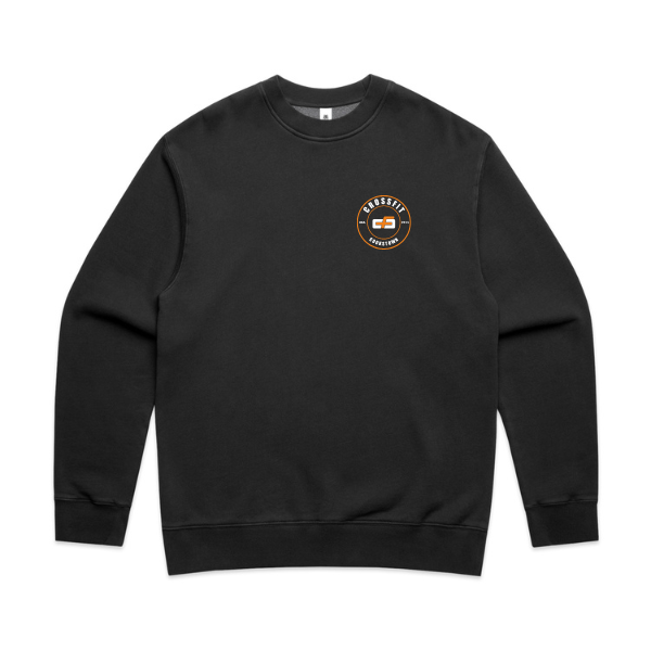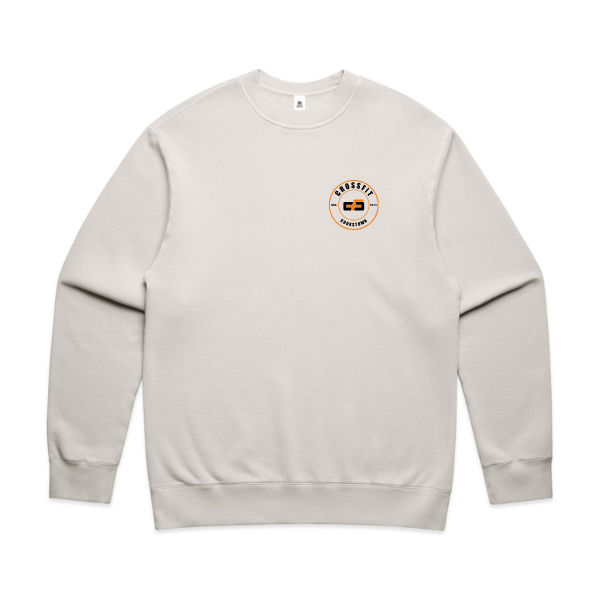 Pre-shrunk to minimise shrinkage, pullover crew, drop shoulder, crew neck, garment dyed, sleeve cuff ribbing